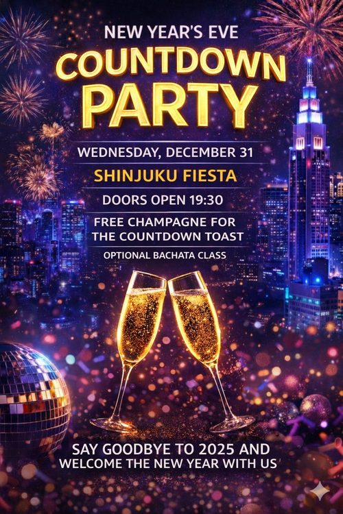 Join us for an optional Bachata lesson to warm up, then enjoy the party and dance into the New Year !